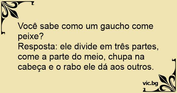 Resposta: ele divide em três partes, come a parte do meio, chupa na cabeça e o rаво ele dá aos outros.