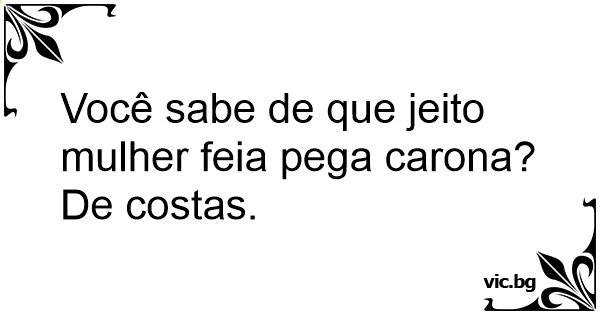 Você sabe de que jeito mulher feia pega carona?