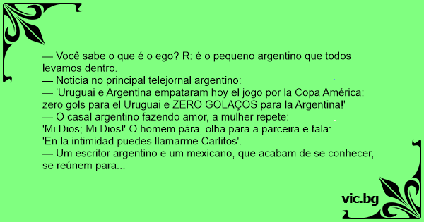 — Você sabe o que é o ego? R: é o pequeno argentino que todos levamos dentro.