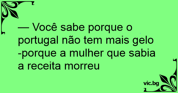— Você sabe porque o portugal não tem mais gelo -porque a mulher que sabia a receita morreu