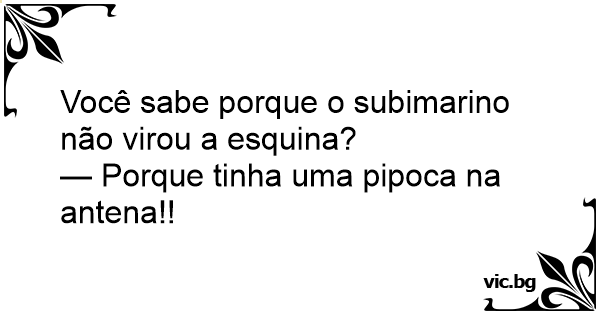 Você sabe porque o subimarino não virou a esquina?