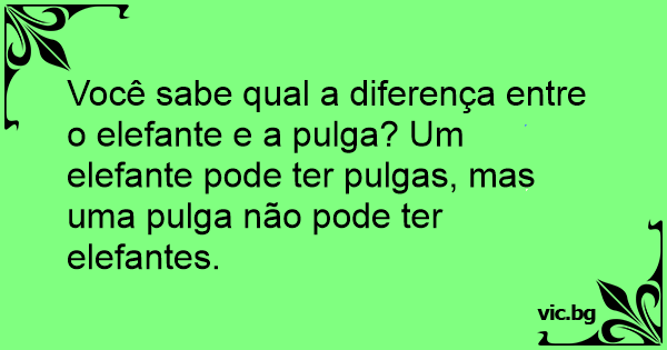 Você sabe qual a diferença entre o elefante e a pulga? Um elefante pode ter pulgas, mas uma pulga não pode ter elefantes.