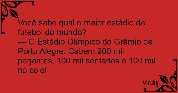 — O Estádio Olímpico do Grêmio de Porto Alegre. Cabem 200 mil pagantes, 100 mil sentados e 100 mil no colo!
