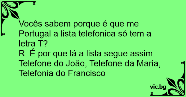 Vocês sabem porque é que me Portugal a lista telefonica só tem a letra T?