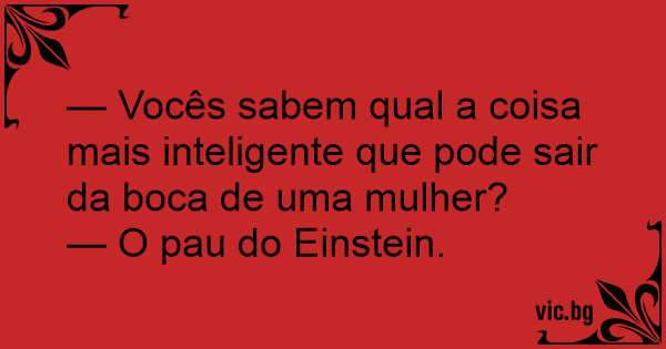 — Vocês sabem qual a coisa mais inteligente que pode sair da boca de uma mulher?