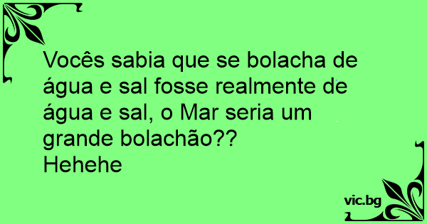 Vocês sabia que se bolacha de água e sal fosse realmente de água e sal, o Mar seria um grande bolachão??