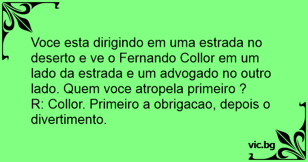 Voce esta dirigindo em uma estrada no deserto e ve o Fernando Collor em um lado da estrada e um advogado no outro lado. Quem voce atropela primeiro ?