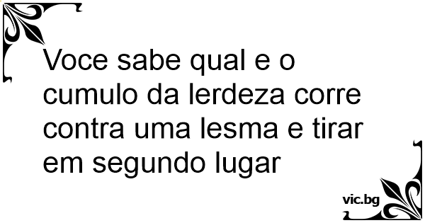 Voce sabe qual e o cumulo da lerdeza corre contra uma lesma e tirar em segundo lugar
