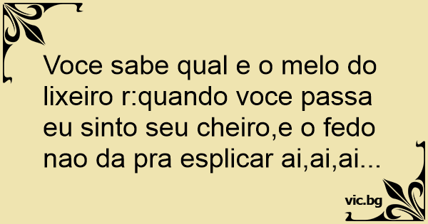 Voce sabe qual e o melo do lixeiro r:quando voce passa eu sinto seu cheiro,e o fedo nao da pra esplicar ai,ai,ai...