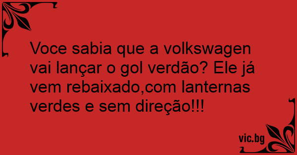 Voce sabia que a volkswagen vai lançar o gol verdão? Ele já vem rebaixado,com lanternas verdes e sem direção!!!
