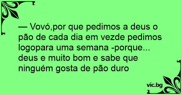 — Vovó,por que pedimos a deus o pão de cada dia em vezde pedimos logopara uma semana -porque... deus e muito bom e sabe que ninguém gosta de pão duro