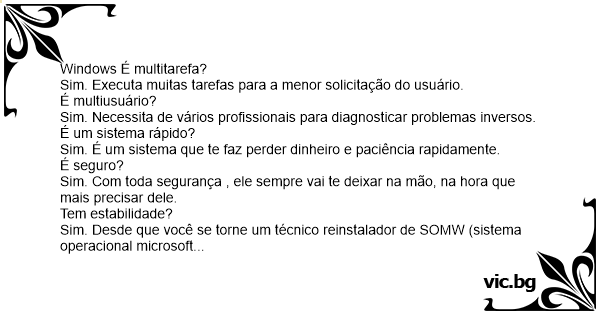 O Windows não é um vírus. Virus é pequeno e eficaz.