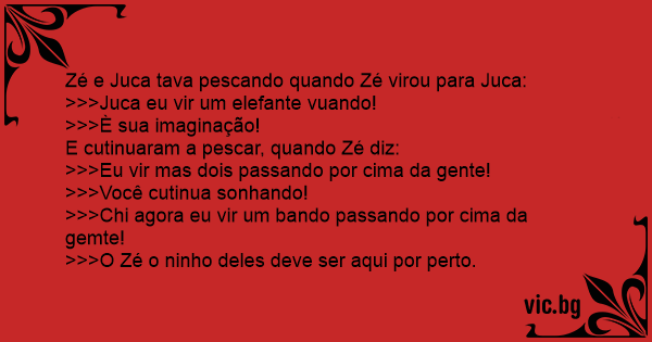 Zé e Juca tava pescando quando Zé virou para Juca:
