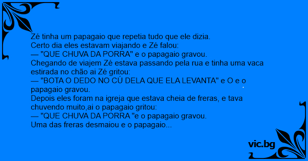 — "QUE CHUVA DA РОRRА "e o papagaio gravou.