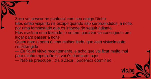 — Dinho, você lembra aquela viúva gostosa naquela fazenda onde nós passamos a noite há nove meses?