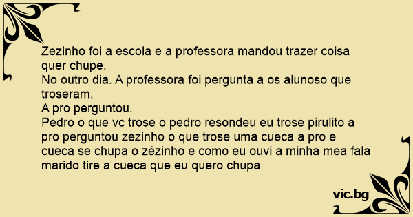 Zezinho foi a escola e a professora mandou trazer coisa quer chupe.