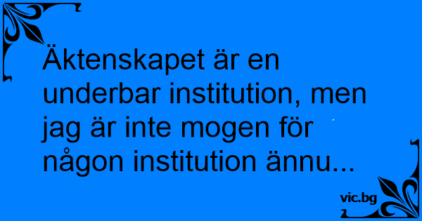 Äktenskapet är en underbar institution, men jag är inte mogen för någon institution ännu...