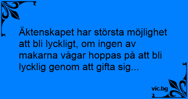 Äktenskapet har största möjlighet att bli lyckligt, om ingen av makarna vågar hoppas på att bli lycklig genom att gifta sig...