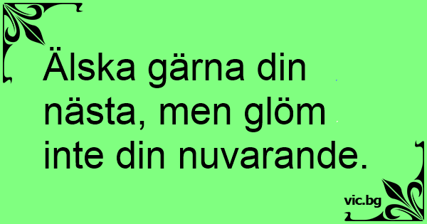 Älska gärna din nästa, men glöm inte din nuvarande.
