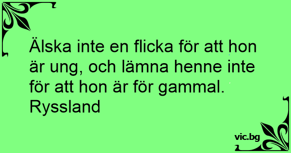 Älska inte en flicka för att hon är ung, och lämna henne inte för att hon är för gammal.