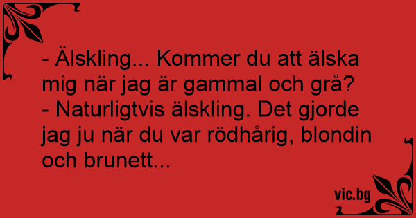 - Älskling... Kommer du att älska mig när jag är gammal och grå?