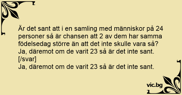 Är det sant att i en samling med människor på 24 personer så är chansen att 2 av dem har samma födelsedag större än att det inte skulle vara så?