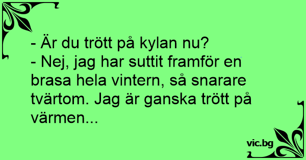 - Nej, jag har suttit framför en brasa hela vintern, så snarare tvärtom. Jag är ganska trött på värmen...