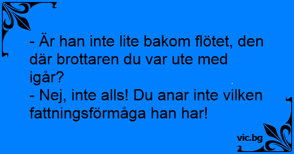 - Nej, inte alls! Du anar inte vilken fattningsförmåga han har!
