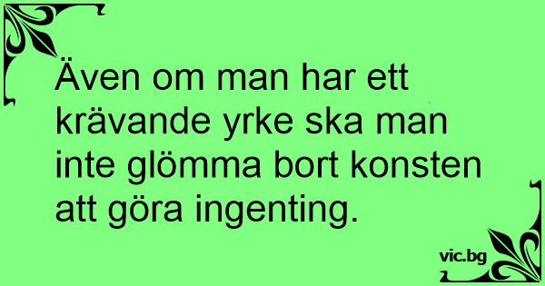 Även om man har ett krävande yrke ska man inte glömma bort konsten att göra ingenting.