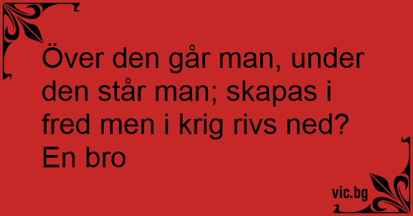 Över den går man, under den står man; skapas i fred men i krig rivs ned?