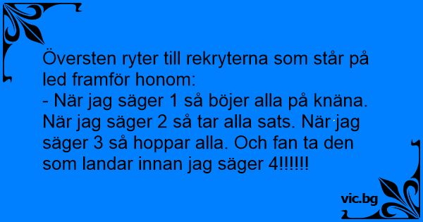 - När jag säger 1 så böjer alla på knäna. När jag säger 2 så tar alla sats. När jag säger 3 så hoppar alla. Och fаn ta den som landar innan jag säger 4!!!!!!