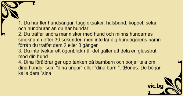4. Dina föräldrar ger upp tanken på barnbarn och börjar tala om dina hundar som "dina ungar" eller "dina barn ". (Bonus: De börjar kalla dem "sina hundbarn".)