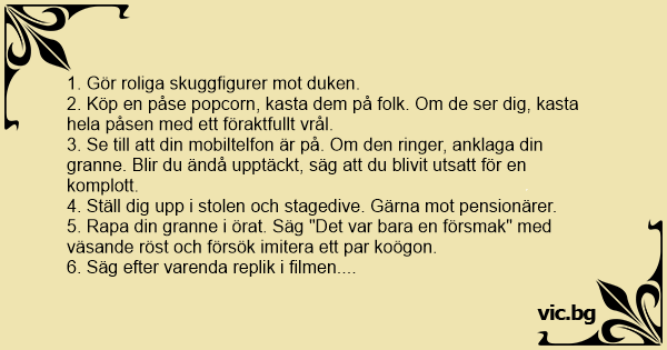 8. Ta med din tama iller på bion. Se till att den smiter.