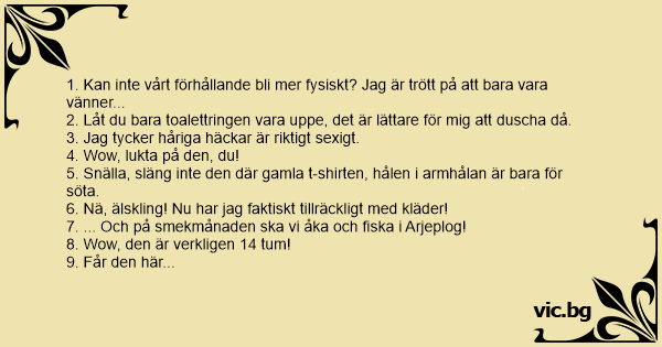 1. Kan inte vårt förhållande bli mer fysiskt? Jag är trött på att bara vara vänner...