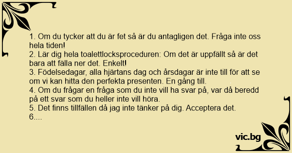 27. Låt oss titta. Om vi inte får titta på andra kvinnor, hur ska vi då kunna veta hur snygg du är.