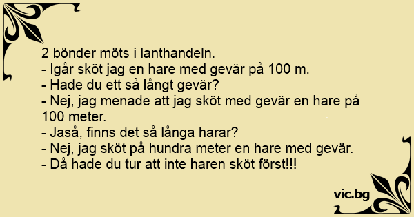 - Nej, jag menade att jag sköt med gevär en hare på 100 meter.