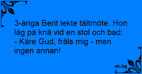 3-åriga Berit lekte tältmöte. Hon låg på knä vid en stol och bad:
