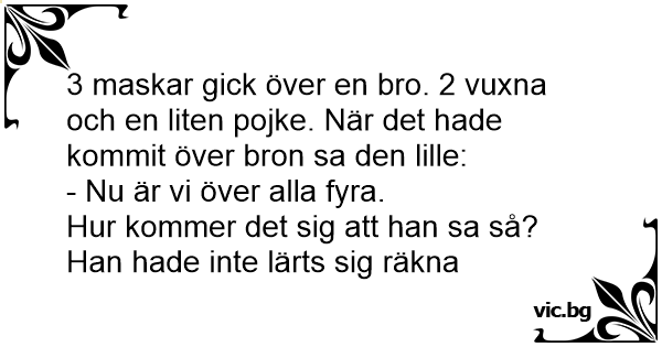 3 maskar gick över en bro. 2 vuxna och en liten pojke. När det hade kommit över bron sa den lille: