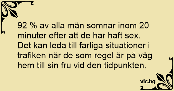 92 % av alla män somnar inom 20 minuter efter att de har haft sеx.