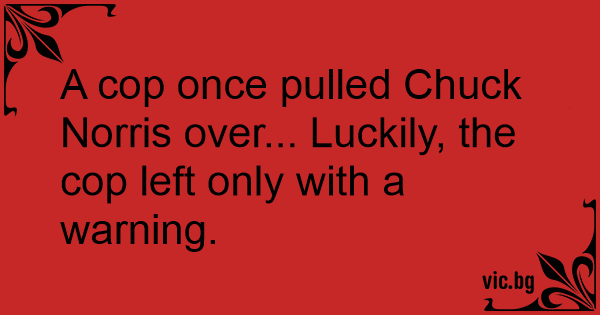 A cop once pulled Chuck Norris over... Luckily, the cop left only with a warning.