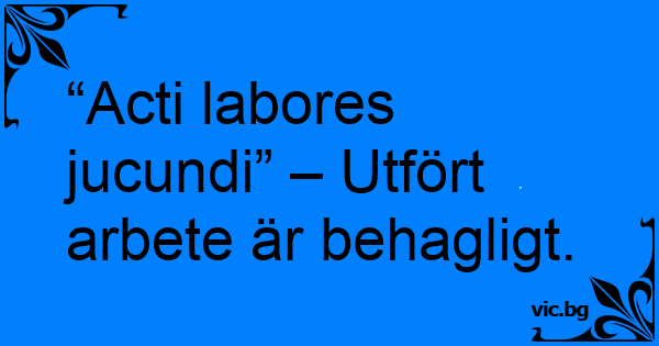 “Acti labores jucundi” – Utfört arbete är behagligt.