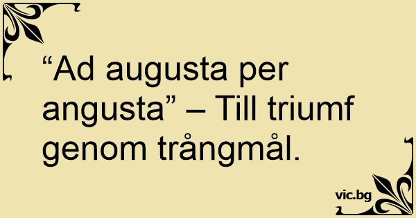 “Ad augusta per angusta” – Till triumf genom trångmål.