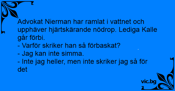 Advokat Nierman har ramlat i vattnet och upphäver hjärtskärande nödrop. Lediga Kalle går förbi.