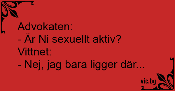 Адвокат: Дали сте сексуално активни? Сведок: Не, само лежам.