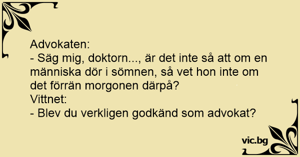 - Säg mig, doktorn..., är det inte så att om en människa dör i sömnen, så vet hon inte om det förrän morgonen därpå?