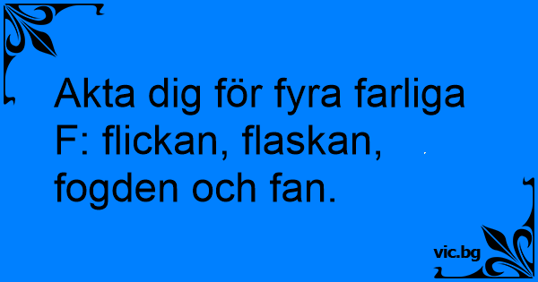 Akta dig för fyra farliga F: flickan, flaskan, fogden och fаn.