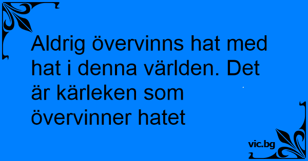 Aldrig övervinns hat med hat i denna världen. Det är kärleken som övervinner hatet