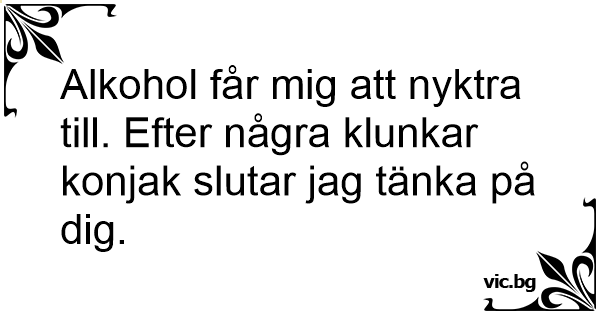 Alkohol får mig att nyktra till. Efter några klunkar konjak slutar jag tänka på dig.