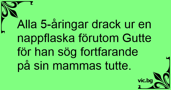 Alla 5-åringar drack ur en nappflaska förutom Gutte för han sög fortfarande på sin mammas tutte.