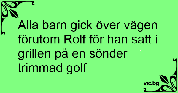 Alla barn gick över vägen förutom Rolf för han satt i grillen på en sönder trimmad golf